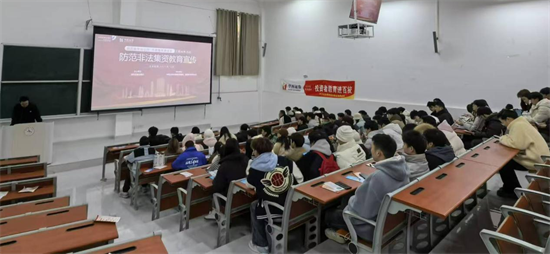 讲座主要内容为防范非法集资教育宣传,讲述了非法集资的特征及表现,举出了四种不同的常见表现形式,并分析了非法集资常见的手段,结合了学生在日常校园生活中容易遇到的一些非法集资、诈骗等现象举了现实案例,以达到警醒和宣传的目的。最后讲座阐述了非法集资的社会危害以及从事非法集资活动的法律处罚,并播放了非法集资相关宣传教育视频,让学生们知道了君子爱财取之有道,天上没有掉馅饼的事情,直接以及间接参与非法集资都将会受到法律的惩罚并追究相应责任。